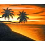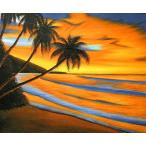 M.Santo 『椰子の木とサンセットビーチ』 バリアート 絵画 L 横 [額横約63cmx縦53.5cm] 風景画 おしゃれな 壁掛け インテリア エスニック アジアン バリ