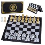 AMEROUS Magetic トラベルチェスセット プラスチック製ポータブル折りたたみ式チェスボードゲーム ゴールドとシルバーのチェス駒付き - 予