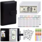 お金管理ポーチ A6サイズ 家計簿セット 袋分け 貯金ノート 現金管理 ファスナーポケット8枚付き ブラック