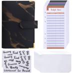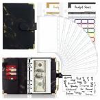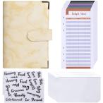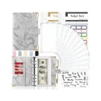 家計簿 バインダー セット A6サイズ 大理石 グレー 12袋 予算シート 封筒式 現金管理 ステッカー