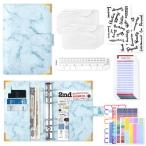 家計管理 ポーチ 家計簿 予算バインダー ファイル ポケット12個付き お金管理 予算管理 大理石 A6 (ブルー)