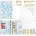 家計管理 ポーチ 家計簿 予算バインダー ファイル ポケット12個付き お金管理 予算管理 大理石 A6 (ホワイト)