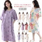 ロング丈 半袖 パジャマ レディース ポケットあり ルームウェア 部屋着 大きいサイズ ワンピース クルーネック 丸首 カップ付きワンピース ゆ