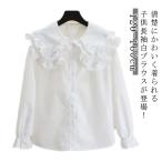 シャツ キッズ 春秋 フリル ブラウス 長袖 子供服 春 秋 ビックカラー 無地 シンプル 薄手 女の子 可愛い かわいい 女児 ジュニア ユニセック