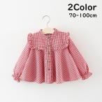 ブラウス ベビー キッズ 子供用 女の子 女児 長袖 チェック柄 ギンガムチェック 袖口ゴム フリル スタンドカラー かわいい おしゃれ お出かけ 子