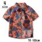 シャツ 半袖 子供服 トップス 前開き スタンダードカラー ボタンフロント 植物 葉っぱ ベビー キッズ 男の子 女の子 夏 海 カジュアル 外出 お