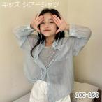 【即納】キッズ トップス 長袖 シアーシャツ 140 トップス シャツ ブルー 子供 キッズ 子供服 夏服 春服 韓国風 透け感