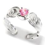 ハワイアンジュエリー トゥーリング スクロール 波 透かし彫り ピンクジルコニア レディース シルバー925