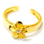 ハワイアンジュエリー トゥーリング プルメリア 花 クリアジルコニア 光沢仕上げ イエローゴールド レディース シルバー925