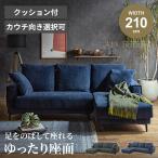 ソファー カウチソファー コーナーソファー l字 ファブリック 幅210cm 布張り 3人掛け 4人掛け 布 ブルー グレー クッション付 松田家具 ラック