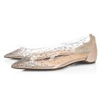 XYD Women Fashion Rhinestones Mesh-Clear Ballet Flats Pointed Toe Spikes Ri