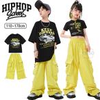 黄色 カーゴパンツ キッズダンス衣装 セットアップ ダンス ヒップホップ 子供服 男の子 女の子 tシャツ 黒 半袖 プリント 車 パンツ ロング丈 段袋 かっこいい