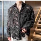 メンズ シャツ 長袖 薄め 春夏向け シャツ ブラウス カジュアル服 フリンジ 羽 シャツ 透明 透け感 シースルー おしゃれ ゆったり 大きめ ブラウス ステージ シ