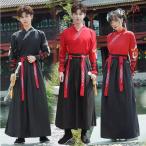 漢服 メンズ チャイナ服 男女兼用 中華服 中国古代服装 袖カバー付き 華やか 中華古代コスプレ衣装 男性 女性 大人 黒 白 袖フリル エスニック 花刺繍 交差襟 武
