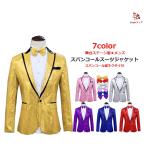 ステージ衣装 メンズ スパンコールジャケット 紳士服 おしゃれ 男性 舞台衣装 ステージ服 カラースパンコール(蝶リボン付) 舞台 コスプレ スーツジャケット 長