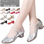 ダンスシューズ レディース バレエシューズ おしゃれ PUレザー フェイクレザー ミドルヒール ローカット ダンス靴 柔らかい チャンキーヒール