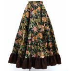 フラメンコ フリル ロングサーキュラースカート ペイズリー カーキ&ブラウン S-Lサイズ FS-16