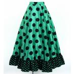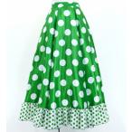フラメンコ フリル ロングサーキュラースカート 水玉 グリーン×ホワイト S-Lサイズ FS-4