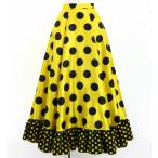 フラメンコ フリル ロングサーキュラースカート 水玉 イエロー×ブラック S-Lサイズ FS-6