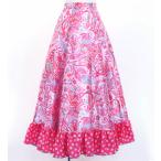 フラメンコ フリル ロングサーキュラースカート ペイズリー ピンク S-Lサイズ FS-9