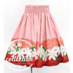 パウスカート 72cm 77cm プルメリア 総柄〈レッド〉送料無料 ヤシリーフ 4本ゴム ハンドメイド ハワイアン フラダンス 日本製