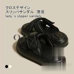 スリッパサンダル レディース ミュール クロス レザー調 厚底 前あき 滑り止め 柔らかい 歩きやすい 履きやすい 美脚 アウトドア 夏