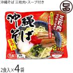沖縄そば 生めん(2食入り) 三枚肉味付豚バラ肉煮込 液体スープ付×4袋 シンコウ食品 沖縄
