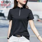 コットンポロシャツ レディースゴルフウエア スタンドカラー半袖ポロシャツ レディースゴルフシャツ カジュアルゴルフウエア ゴルフ女子