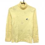 ブラックアンドホワイト ハイネックセーター イエロー 地模様 ロゴ刺しゅう ニット ウール混 レディース M ゴルフウェア Black&White