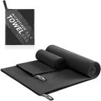 スポーツタオル 2個セット 速乾タオル 高吸水 肌に優しい生地 収納袋付き (ブラック, 40x60cm + 50x120cm)
