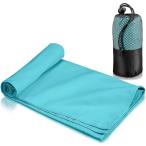 速乾タオル 登山 スポーツタオル 超軽量 コンパクト 吸水速乾タオル マイクロファイバータオル バスタオル(ライトブルー, Lサイズ)