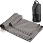 速乾タオル 登山 スポーツタオル 超軽量 コンパクト 吸水速乾タオル マイクロファイバータオル バスタオル 旅行(グレー, Lサイズ)