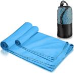 速乾タオル 登山 スポーツタオル 超軽量 コンパクト 吸水速乾タオル マイクロファイバータオル 旅行(ライトブルー, MLセット)