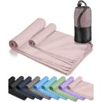 速乾タオル 登山 スポーツタオル 超軽量 コンパクト 吸水速乾タオル マイクロファイバータオル 旅行(シェルピンク, MLセット)