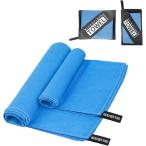 速乾タオル 2枚セット マイクロファイバー 吸水 軽量 ジム 水泳 旅行用 (ブルー, 152cmx76cm、80cmx40cm)