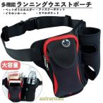 ランニングポーチ ウエストポーチ レディース メンズ 男女兼用 ボトルホルダー付き イヤホンホール イヤホン穴 ワンタッチバックル 長さ調節可能 ファ