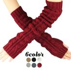 アームウォーマー レディース ニット ケーブル編み 無地 指穴あり 指なし アームカバー ハンドウォーマー ロング 手袋 暖かい あったか 寒さ対策
