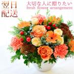 誕生日 あす着 フラワーギフト フラワーアレンジメント 花 ギフト 橙 オレンジ 長寿 お祝い 記念日 展示会 発表会 退職祝い おしゃれ きれい