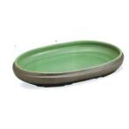 信楽焼 青 窯変 ソリ 小判 水盤 14号