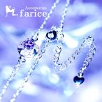 アメジストカラー・キュービックジルコニア装飾 ローズフラワー(バラの花)&6クリアストーンデザイン ハートチャーム付き レディース アンクレット
