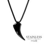 ステンレス 狼の牙 ネックレス シルバー シンプル ブラック 黒 狼牙 ペンダント ウルフ オオカミ 爆買