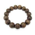 南無阿弥陀仏精工彫り15mm陰沈木ブレスレット木製数珠石街