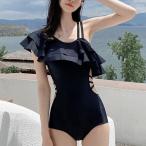 フロントリボン カットアウト フリル ワンピース 水着 女性 レディース スイムウエア ラッシュガード モノキニ 夏 プール 海 ビーチ リ