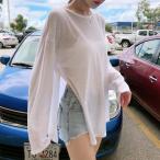ラッシュガード Tシャツ レディース ス 長袖 ビーチウェア カバーアップ オーバーサイズ 体型カバー 露出少なめ 日焼け防止 ビーチ 白 夏