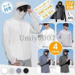 夏 ラッシュガード メンズ トップス 長袖 カーディガン フード付き 涼感 シンプル UVカット 日焼け止め服 薄手 涼しい 夏 自転車