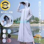 ラッシュガード 夏 レディース 長袖 UVカットパーカー 日焼け防止 冷感 ロング アウター 薄手 膝丈 涼しい 自転車 フード付き 紫外線対策