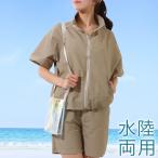 ラッシュガード オーバーウェア レディース ロング丈 体型カバー 接触涼感 長袖 フード付き 指穴つき ポケットあり UVパーカー