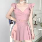 シアー ドッキング フリル袖 ワンピース スイムウエア 女性 レディース 水着 夏 サマー 海 ビーチ 上品 単色 無地 スカート ハートネ
