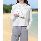 日除け パーカー ラッシュガード フェイスガード サンバイザー レディース トップス 長袖 つば広 ショート丈 UVケア UVカット フード 指穴 冷