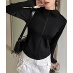 ラッシュガード ソリッドカラー ウエストシェイプ ハイネック ジップアップ ラッシュガード レディース